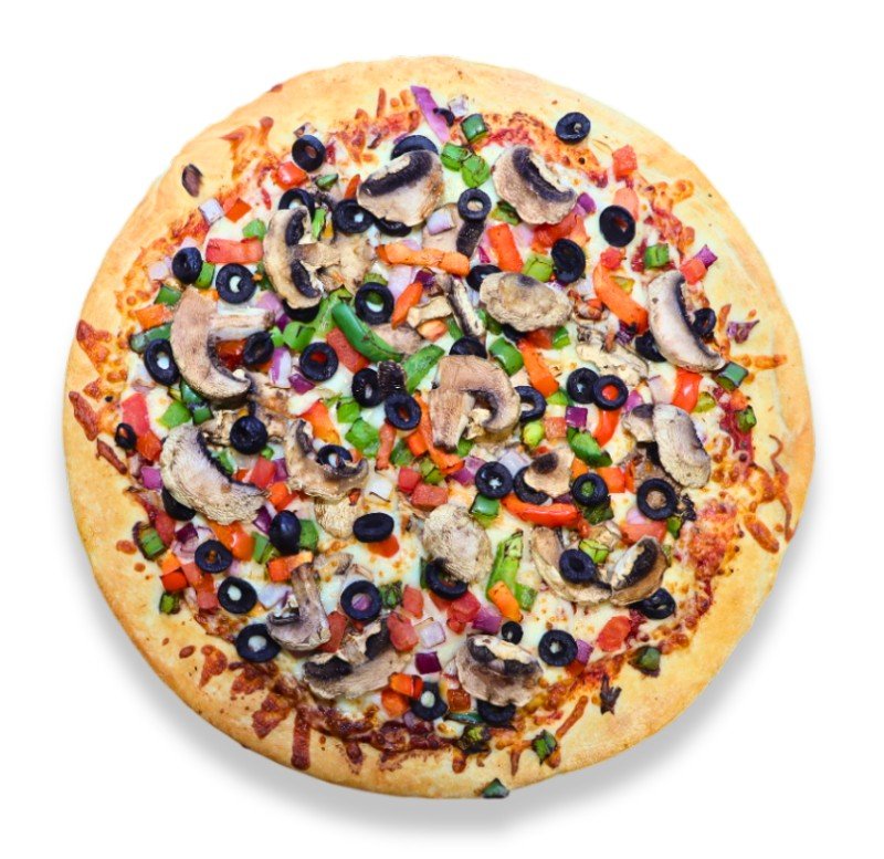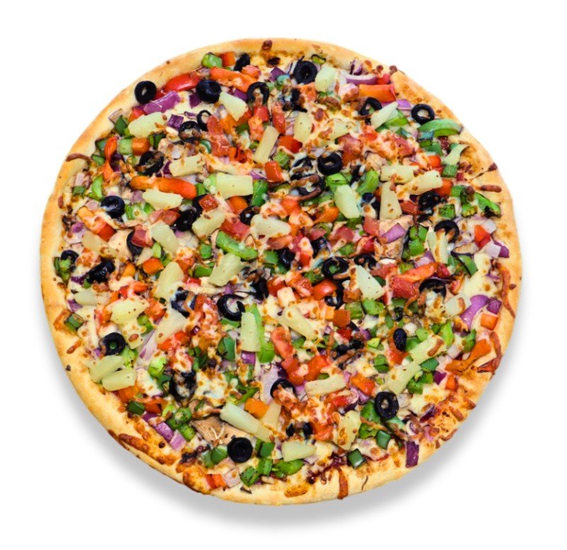 Mushrooms, Paneer, Green Peppers, Red Peppers, Olives, Tomatoes, Pineapple, Onions, Tomato Sauce, Mozzarella Cheese