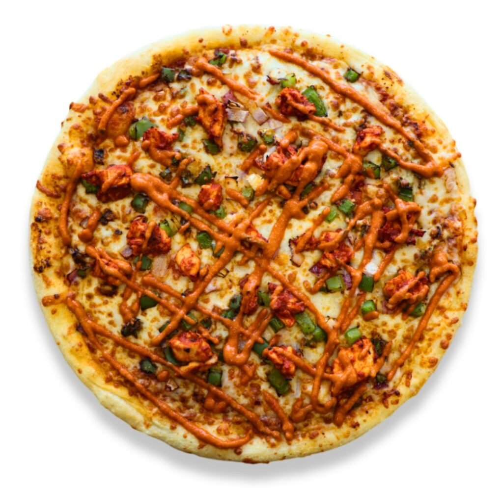 Tandoori Chicken, Green Peppers, Tomatoes, Onions, Mozzarella Cheese