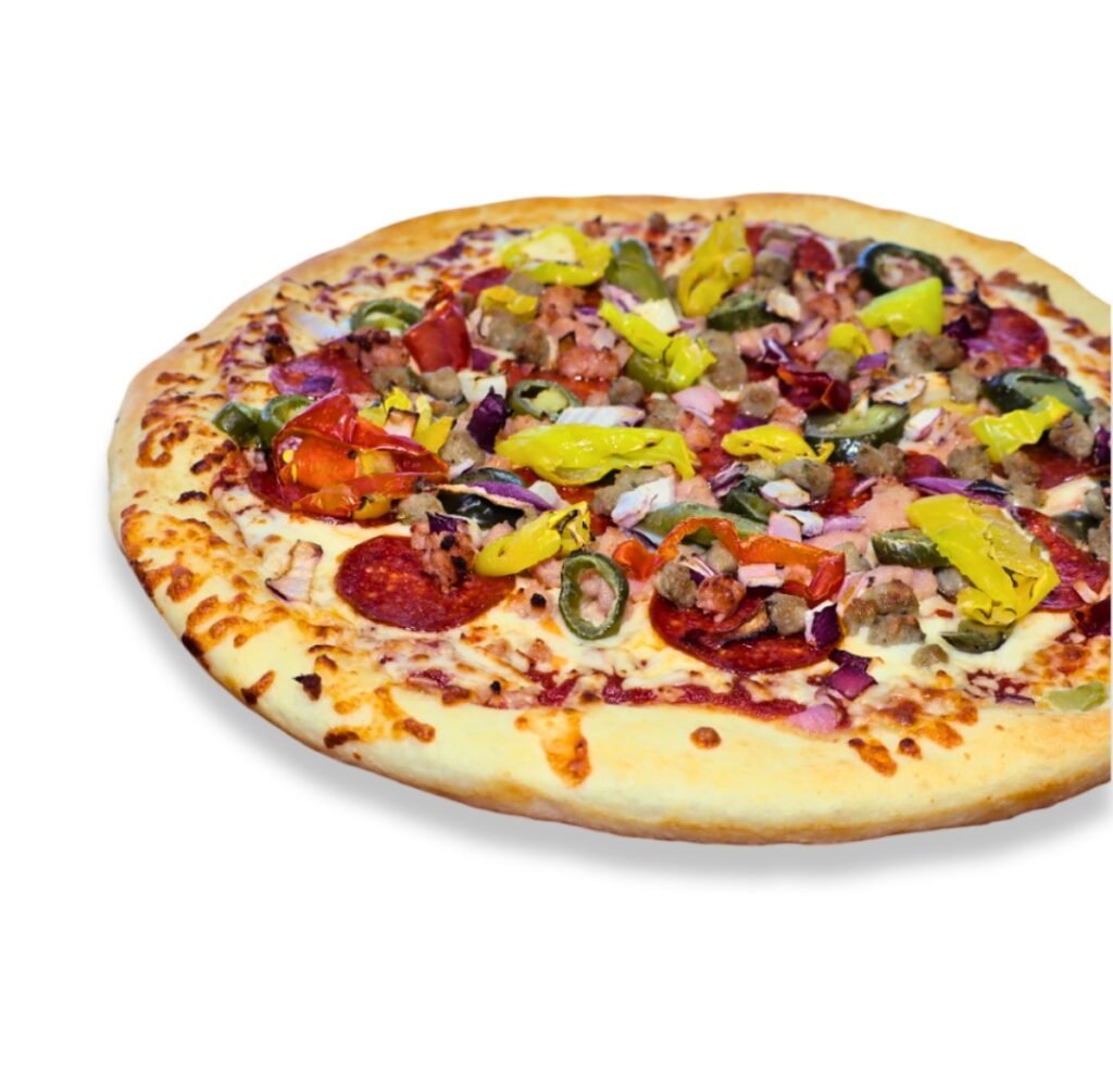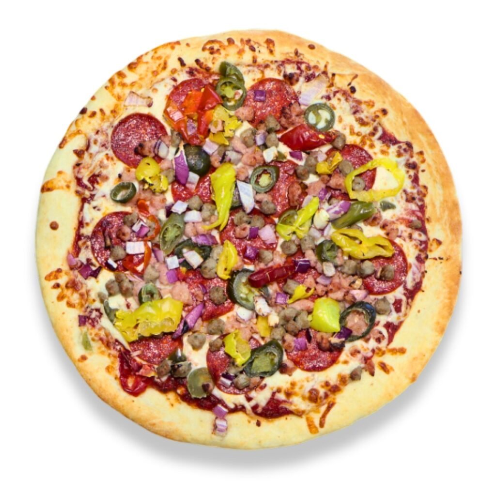 Pepperoni, Sausage, Beef, Ham, Bacon Crumble, Mozzarella Cheese