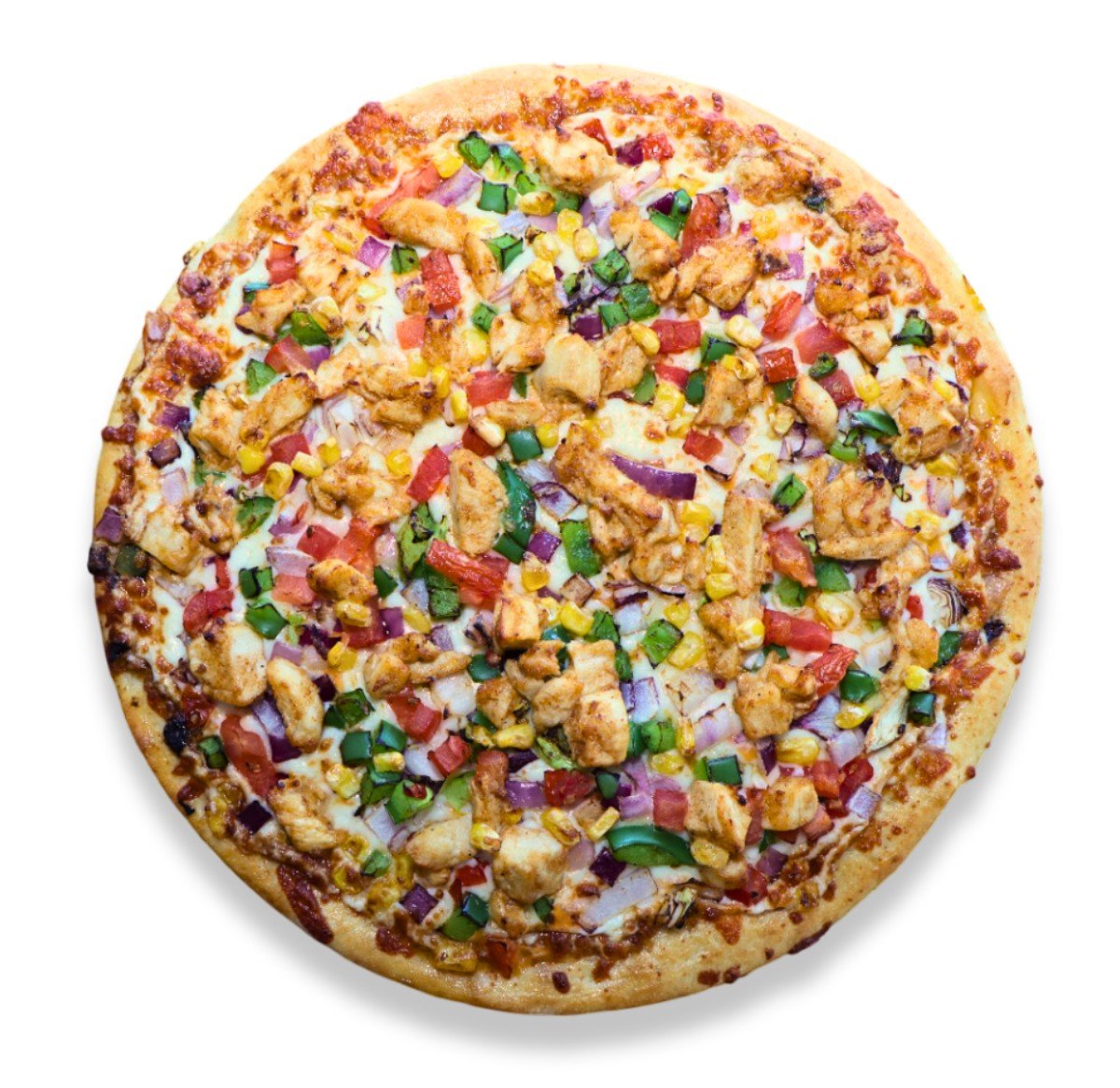 Chicken, Green Peppers, Tomatoes, Red Onions, Corn, Mozzarella Cheese